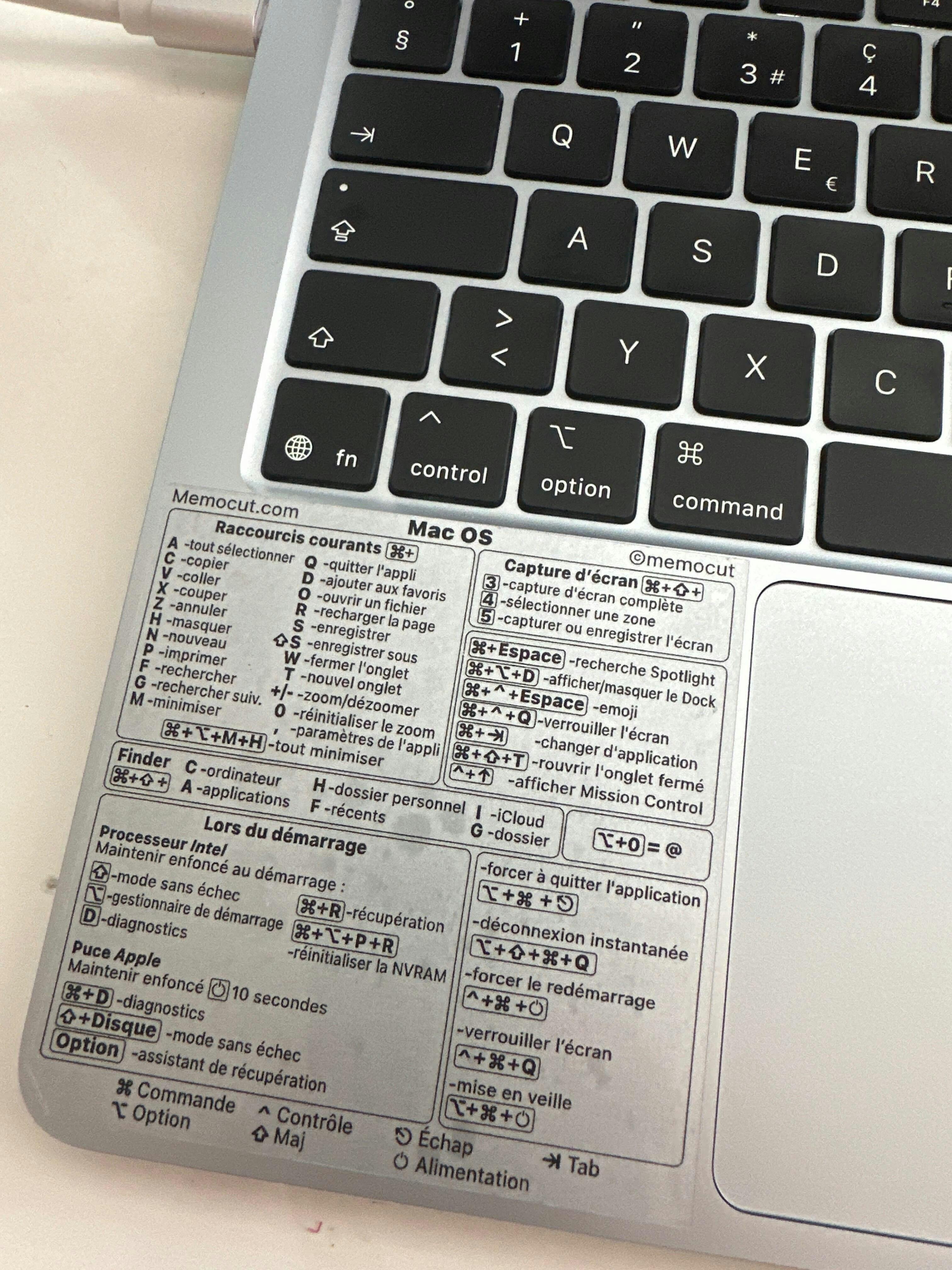 Il est très utile ce memocut. Pour l’instant, j’ai juste constaté qu’il y a une différence par rapport à mon clavier. Le @ n’est pas Option+0 mais Option+G chez moi mais probablement c’est lié à mon clavier suisse 🤗 sinon top